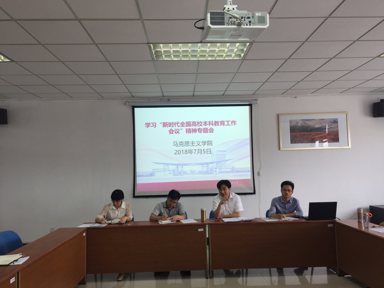 在会议室召开学习“新时代全国高校本科教育工作”精神专题会议。院长梅景辉教授主持会议并传达了相关文件精神,强调思政课教学要坚持“以本为本”,推进“四个回归”,为糖心视频