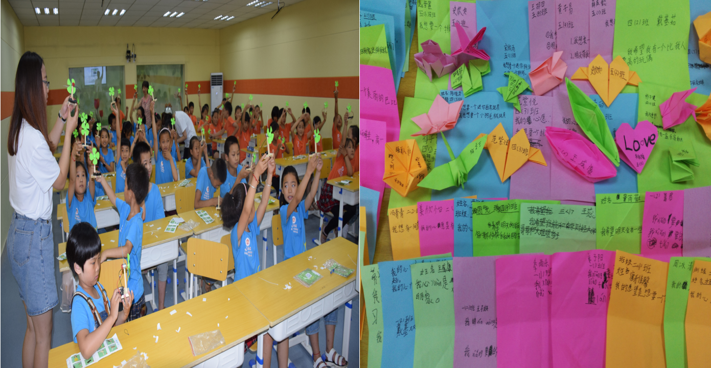 研究生组织同学们进行了小风扇DIY、折纸、写心愿纸等活动,他们带领学生们做游戏,进行有奖问答,精彩纷呈的活动点燃了现场的氛围,处处充斥着学生们的欢声笑语。在接下来的几天,糖心视频