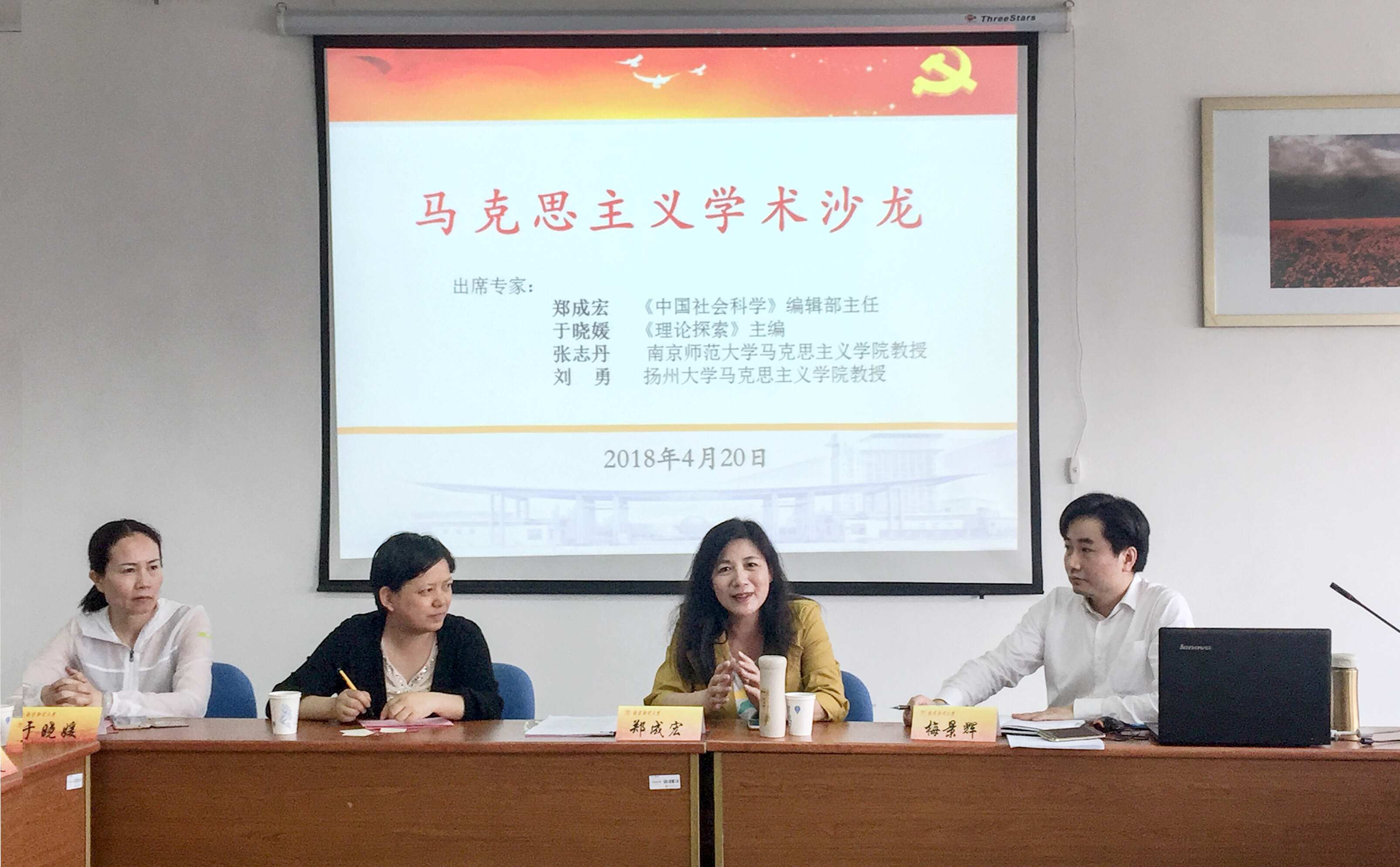 于德正楼508室举办了马克思主义学术沙龙活动,《中国社会科学》编辑部主任郑成宏、《理论探索》主编于晓媛、《河海大学学报(哲学社会科学版)》编辑部主任吴玲、南京师范大学糖心视频