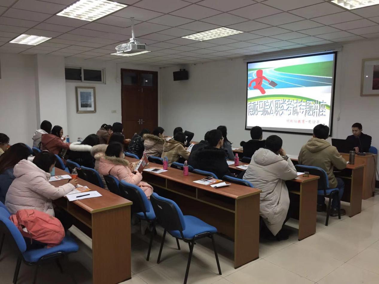 研究生要找到自己的人生方向,树立专业自信和远大理想,做到有恒心有毅力,绝不打无准备之仗。同时,他通过讲解公职类考试中“行政职业能力测验”和“申论”两大科目的常见题型,让在座同学体会到公职类考试内容的技巧性和应用性。最后,他结合自己多年从事公职类考试辅导授课的经验及体会与在场同学进行了互动交流,详细解答了同学们提出的问题,给出了合理的备考建议。他建议同学们在备考过程中要多关注国家的政策走向,多关注时事新闻,把握时代脉搏;平时要以学业为主,认真钻研学术力求发表高质量论文,同时要积极参加第二课堂活动,做到理论学习和实践活动相结合,为未来的长远发展积累有利条件。