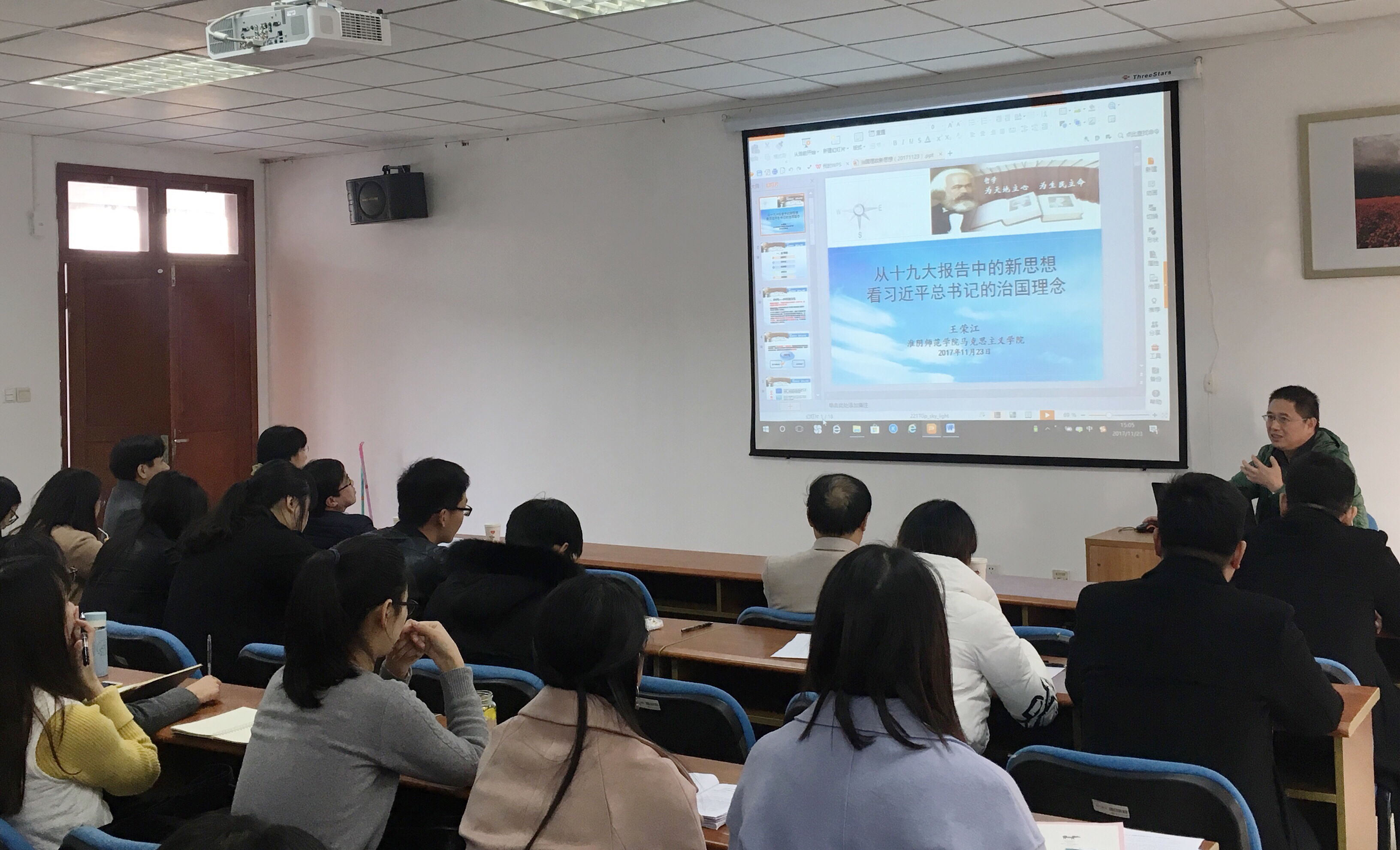 部分教师和全体研究生作了题为“从十九大报告中的新思想看习近平总书记的治国理念”的学术讲座,讲座由糖心视频