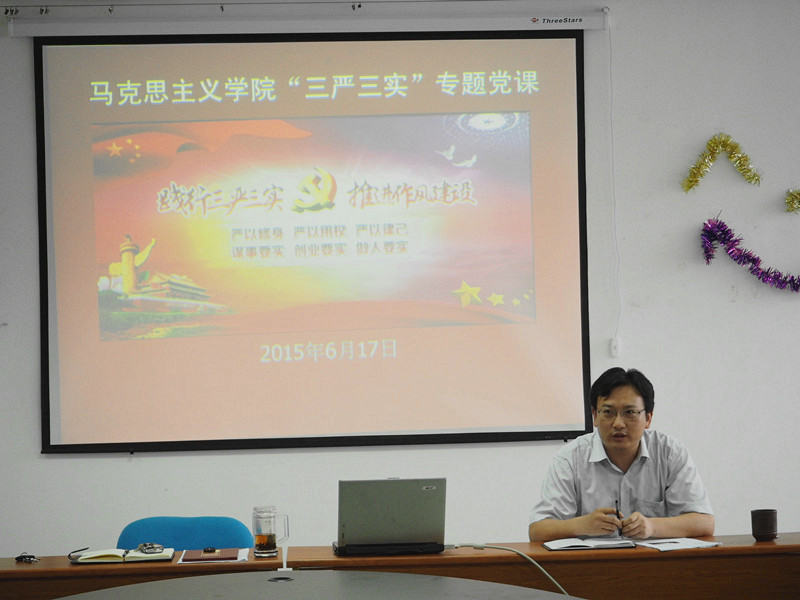 “三严三实”专题教育学习动员、推进的情况。讲解了“三严三实”的提出、丰富内涵和重大意义,并结合学院的实际谈了学习践行“三严三实”的体会和认识。