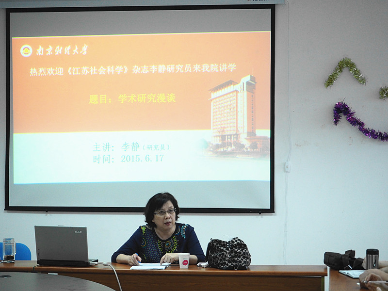 李静研究员首先简要介绍了目前我国各类期刊的总体情况,在此基础上给在座的师生分享她的研究心得,从事学术研究和写好学术论文要具备的“四个意识”:问题意识、创新意识、规范意识和建构意识(综合意识)。同时,她还结合自己指导研究生论文的经历,给全体研究生就如何确定适合的论文选题、如何寻找好切入的角度、如何提升语言魅力,以及如何写好摘要和确定好关键词,提出比较好的意见和建议。