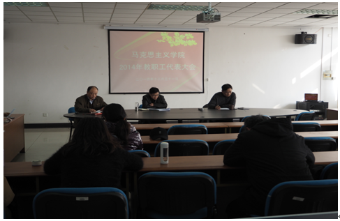 2014年度教职工代表大会在学院专三508会议室隆重举行,学院全体教职工参加了会议,会议由分工会主席赵磊主持。