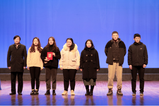 黄建元总会计师等领导和嘉宾为获奖班级、团队颁奖,并合影留念。