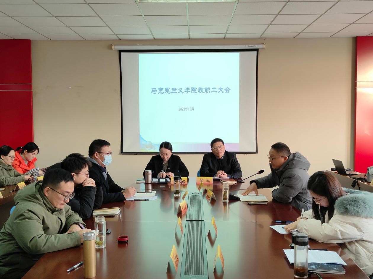 在德正楼508会议室召开全院教职工大会,马克思主义学院党委书记陈翔、院长卓承芳,副院长刘希刚、副院长王敏光、院长助理范渊凯和全体教师参加会议,会议由陈翔书记主持。本次教职工大会共分为四项议程。