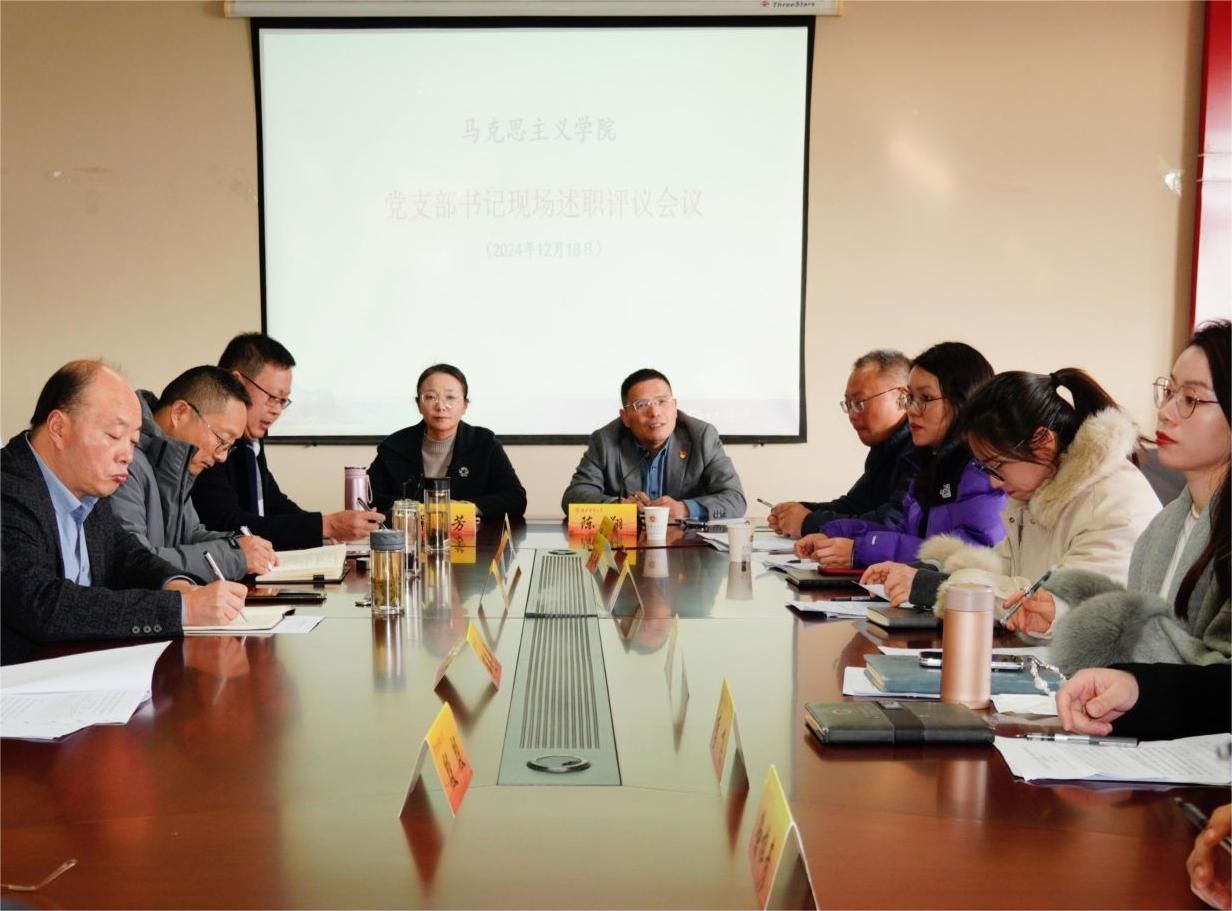 第一项议程主要为2024年度党支部书记抓基层党建述职评议考核会议。马克思主义基本原理教研部党支部书记王萌、马克思主义中国化教研部党支部书记黄继红、中国近现代史纲要教研部党支部书记李飞、思想道德与法治教研部党支部书记徐梓彦进行了述职。学院党委书记陈翔在点评中对学院党支部过去一年的党建工作给予了充分肯定。他表示,要继续弘扬奋斗精神和伟大建党精神,紧扣党支部建设的“七个有力”要求,充分发挥基层党组织的凝聚力和战斗力。图书馆党总支书记陆斌在总结时指出,糖心视频