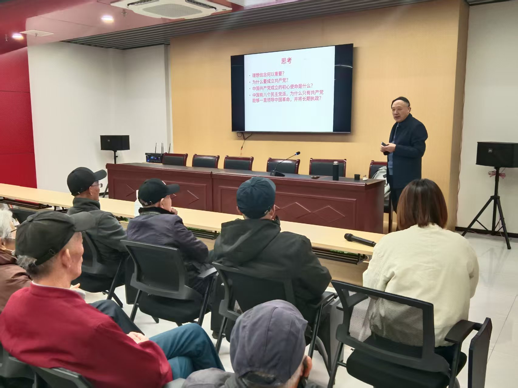 退休教师王遐见教授应南京市玄武区玄武街道办事处邀请,在花园路社区党群服务中心为40多名老党员作了党课讲座,主题为:《中国共产党精神谱系的价值旨趣》。王教授引导党员们对共产党与其他民主党派、共产党与国民党比较,思考理想信念何以重要?在共产党领导下为什么能打下江山并能守住江山、为什么能使中国由弱到强而不断走向胜利?许多先辈英烈们为什么能不顾自身安危而顽强奋斗?着重对伟大建党精神、红船精神、长征精神、遵义会议精神、抗战精神、赶考精神、抗美援朝精神、“两弹一星”精神、抗洪救灾精神、抗疫精神等系列精神加以分析,声情并茂、透彻明了地诠释共产党精神谱系的历史背景、思想内涵及时代价值,受到与会党员们一致认同和高度评价。