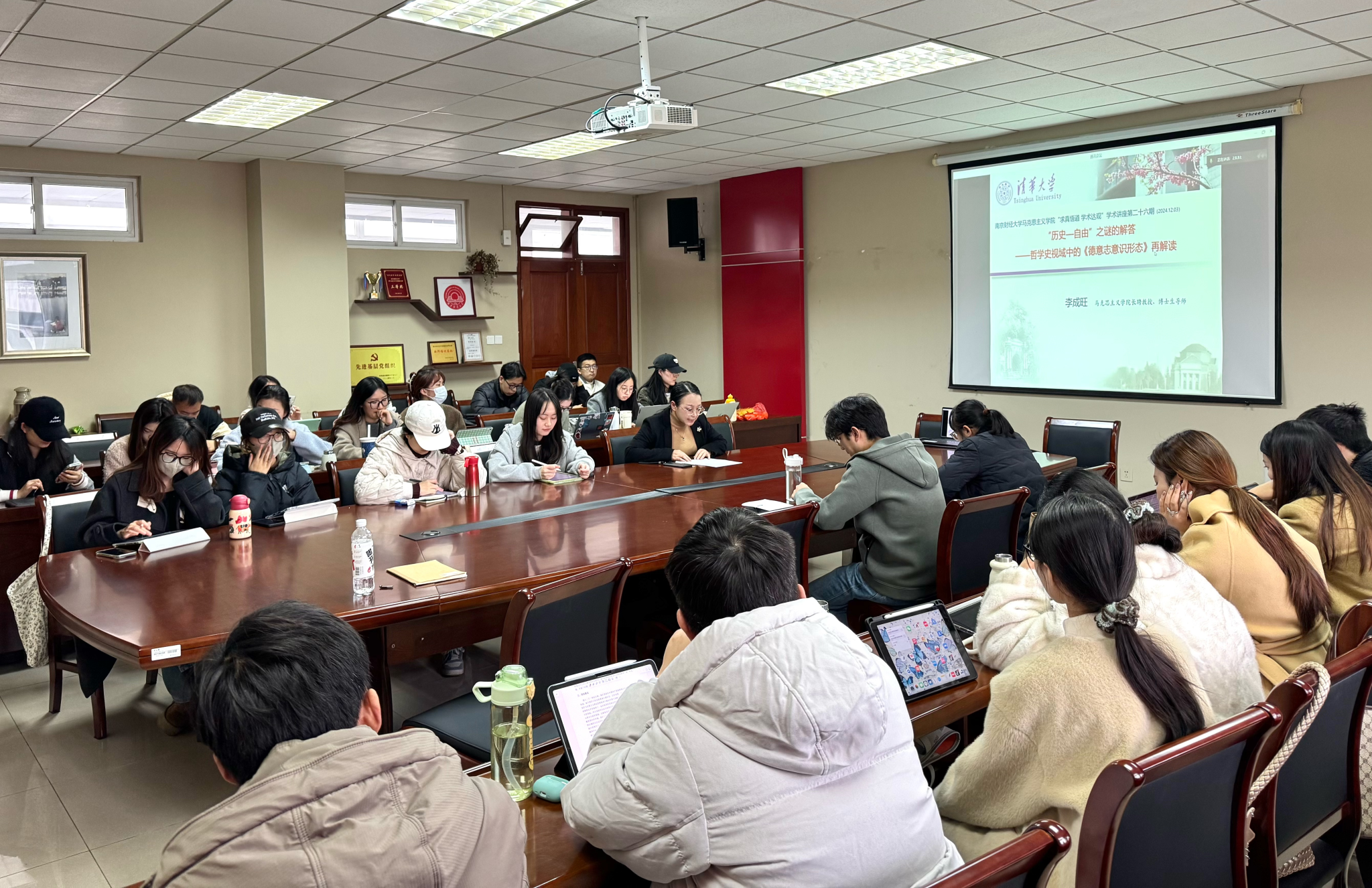 师生作题为“‘历史—自由’之谜的解答——哲学史视域中的《德意志意识形态》再解读”的学术讲座。本次讲座由院长卓承芳教授主持,2023级研究生参与学习。