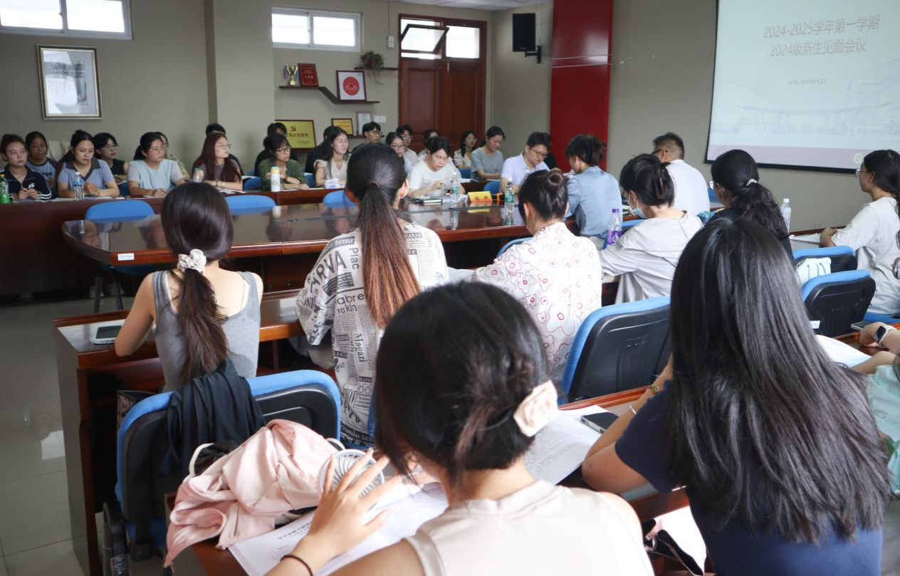在德正楼508会议室召开2024级研究生培养规章制度与学术道德规范会议,学院院长助理范渊凯、研究生辅导员王晶、研究生秘书张妍以及糖心视频
