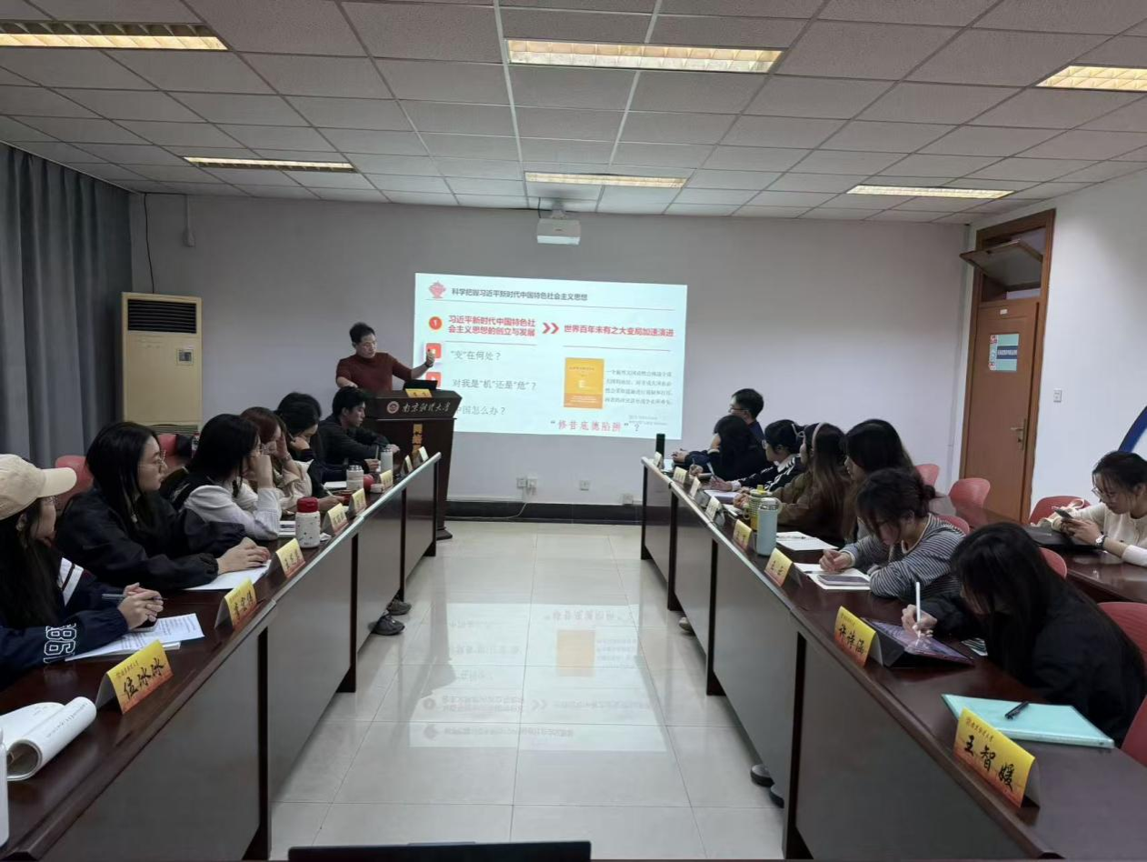 分党校系列培训第八讲邀请了党支部书记李飞为全体党员、入党积极分子讲授题为“科学把握习近平新时代中国特色社会主义思想”的主题党课,党课在校网络思政工作中心举行。