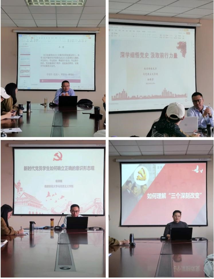 本次党员教育培训共包括四个专题报告,分别由副院长王敏光教授以及青年教师徐梓彦、杨荣刚、李飞担任主讲。